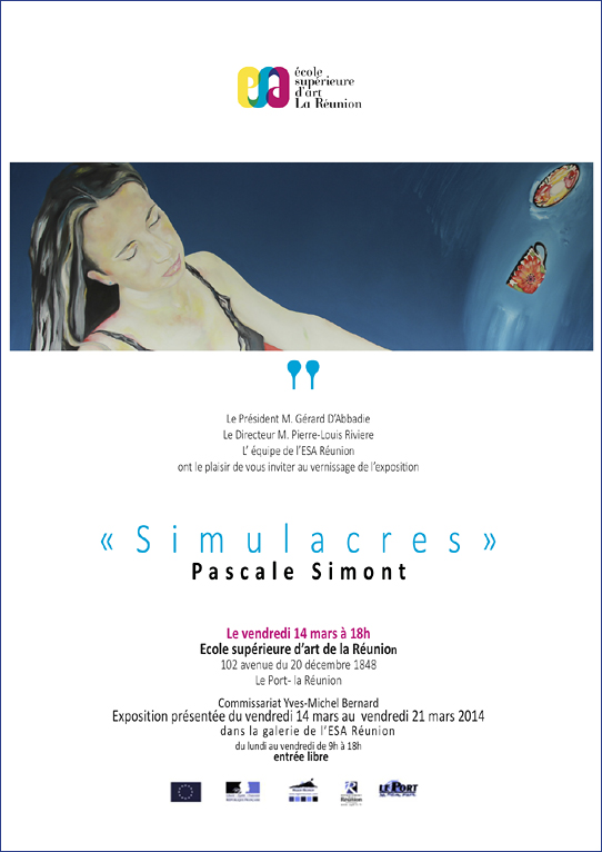 Par ailleurs, rappelons à l'ensemble des adhérents qui suivent ce cours qu'ils sont invités au vernissage de l'exposition de Pascale Simont intitulée "Simulacres" dont ils trouveront ci-dessous l'affiche.